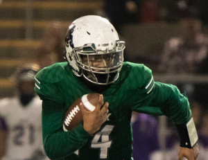 Helix junior quarterback DELSHAWN TRAYLOR races with the ball on Saturday night against Saints. / photo by Alejando Oceguera