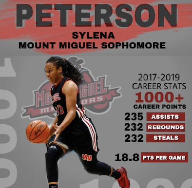 Senior MICHELLE CORLEY added 10 points, three assists and four steals for Mount Miguel (5-0 GHL, 19-5).