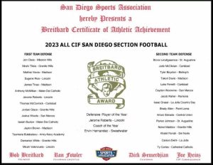 Since the San Diego Section was founded in 1960, only two other offensive linemen claimed Player f the Year honors: Robbie Coffin (Mira Mesa, 1983) and Jack Harrington (Rancho Buena Vista, 1988).