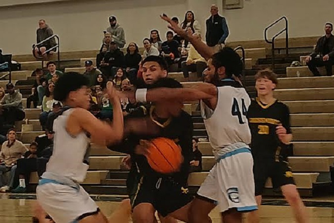 The second half saw an 8-poiny cushion disappear, again thanks to Cuyamaca guard Saiah Aquino. a freshman out of Olympian, stole the ball more than a half-dozen times,all leading to transition buckets.