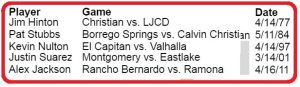 Helix junior Ben Williams became the fifth player in CIF-San Diego Section history to belt four doubles in a single game, leading the highlanders to an annihilation of hte Marauders, 27-2, on Monday (Mar. 9). The contest was vacated in the middle of the fifth innings.